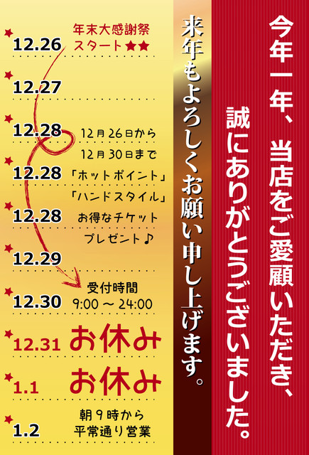今年一年、当店をご愛顧いただきまして、誠にありがとうございました!